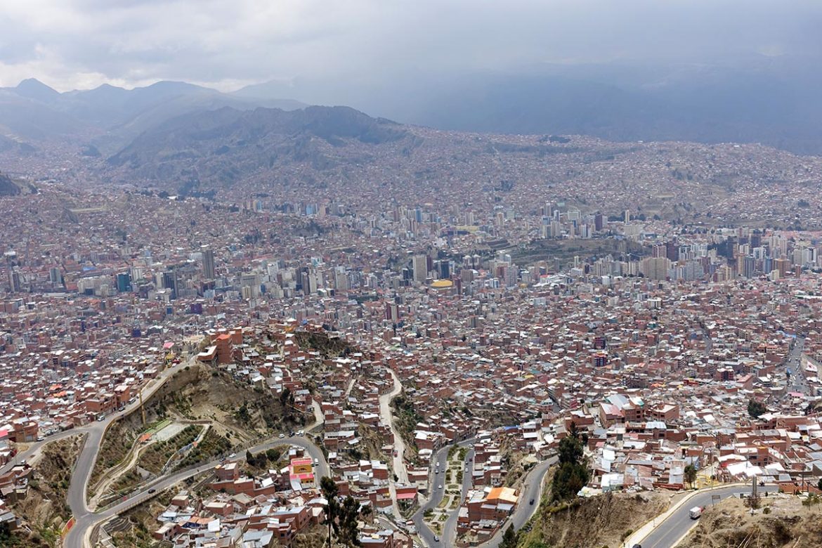Mais La Paz me fascine peut-être surtout parce que, tout comme la route qui grimpe tout droit pour rejoindre l’aéroport à plus de 4000 mètres, elle possède cette fougue inconsidérée qui la fait dépasser ses propres limites, elle nous élève toujours plus haut dans sa beauté insolite de briques, dans son enchevêtrement de vie et d’activité, le long de ses rues et de ses escaliers tendus à la verticale, défiant la gravité, au delà du raisonnable, jusqu’à en crever le ciel.