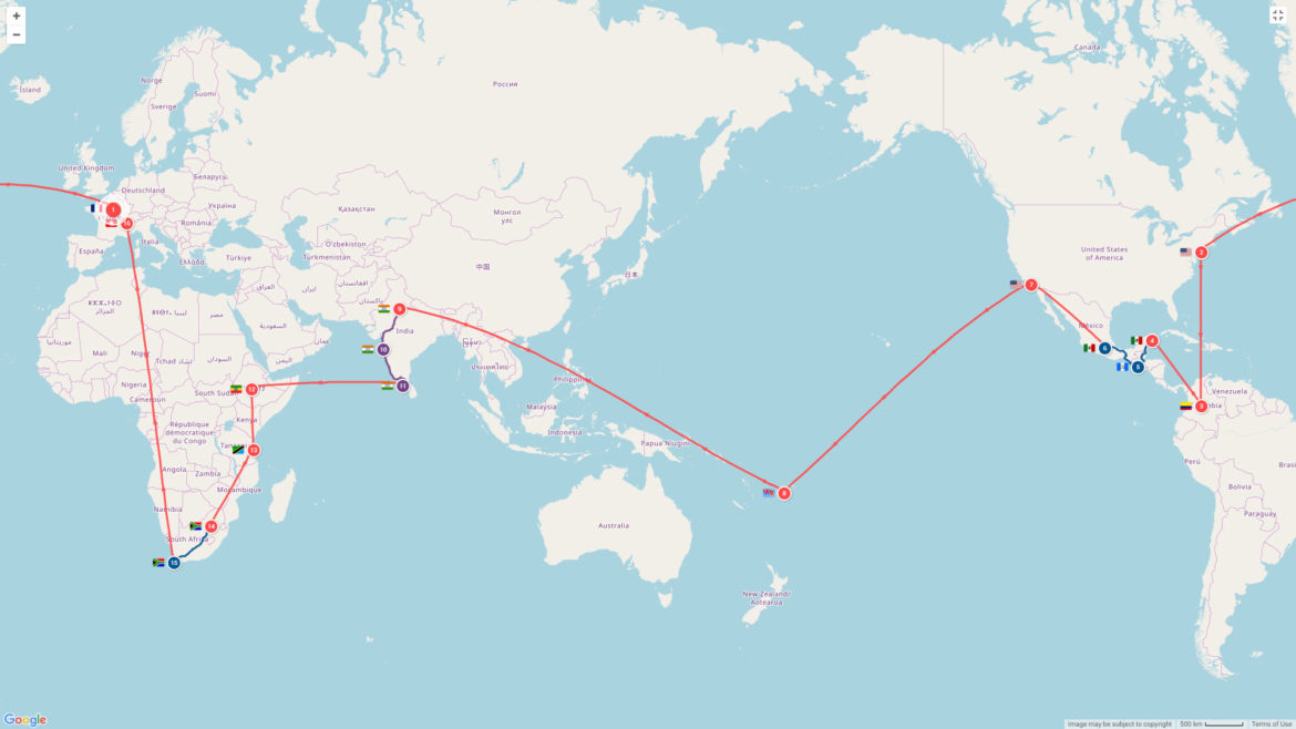 L’itinéraire du tour du monde 2015-2016 dans les grandes lignes